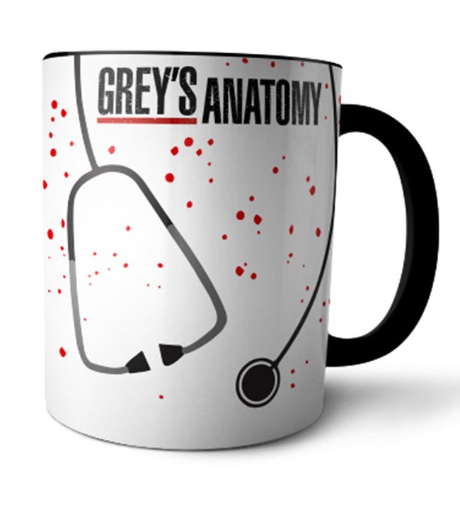 As canecas da NerdHouse são exclusivas e esse modelo da caneca tem o interior e alça preta, com a estampa de Greys Anatomy Hoje é um belo dia para salvar vidas.
