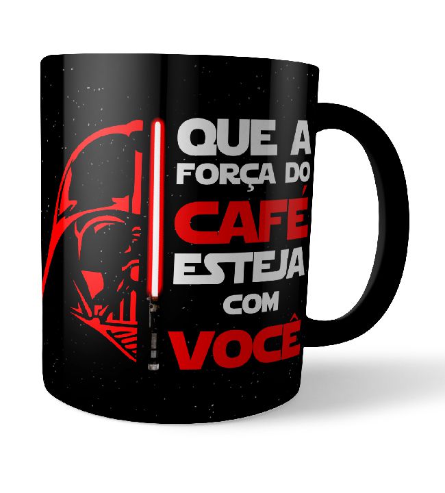 As canecas da NerdHouse são exclusivas e esse modelo da caneca tem o interior e alça preta, com a estampa de DarkSide Coffee Star Wars.